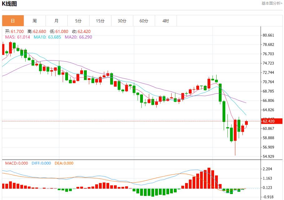 Pasaran minyak mentah: Sehingga 20:18 Beijing, minyak A.S. meningkat, kini pada 62.410, peningkatan 1.48%. Sebelum New York, harga minyak mentah meningkat dalam perdagangan intraday baru-baru ini, mencabar tahap rintangan utama $ 61.50, disokong oleh kemunculan gelombang pembetulan kenaikan harga jangka pendek dan kemunculan isyarat positif dari indeks kekuatan relatif (RSI). Walau bagaimanapun, harga juga menghadapi halangan yang kuat, iaitu rintangan EMA50.
